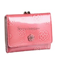 CLATHAS山茶花漆皮立体花纹短钱包B008RECWQG